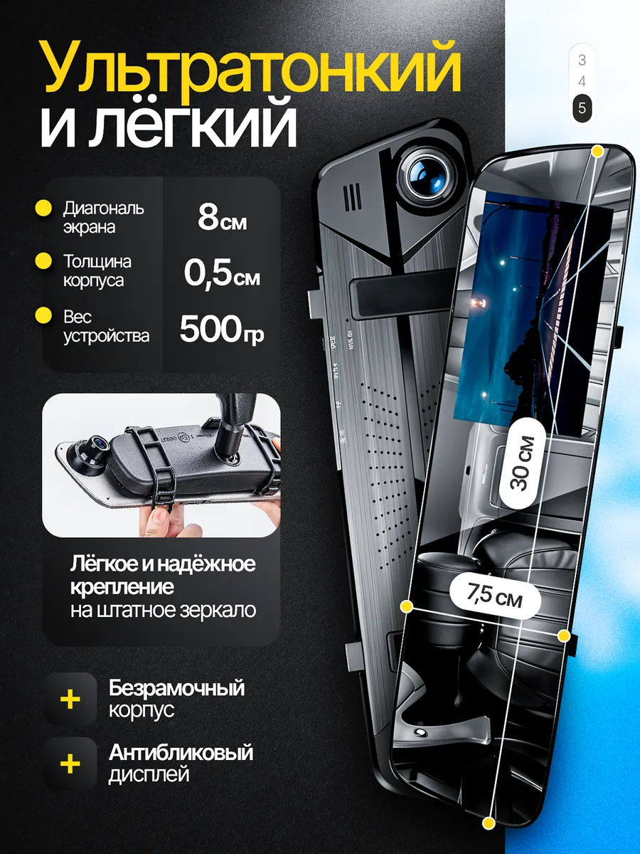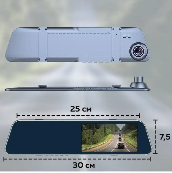 Компактный размер и простая установка делают регистратор очень удобным и практичным. Автозеркало можно закрепить на лобовом стекле с помощью специального крепления — держателя присоски. Это не просто девайс, а гарант спокойствия для водителя.